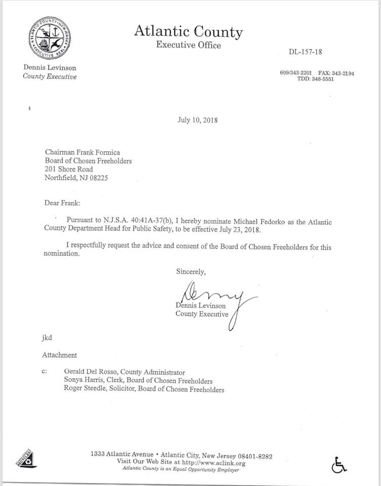 Below is the nomination letter, first reported by Hurley, from Levinson to Freeholder Director Formica: