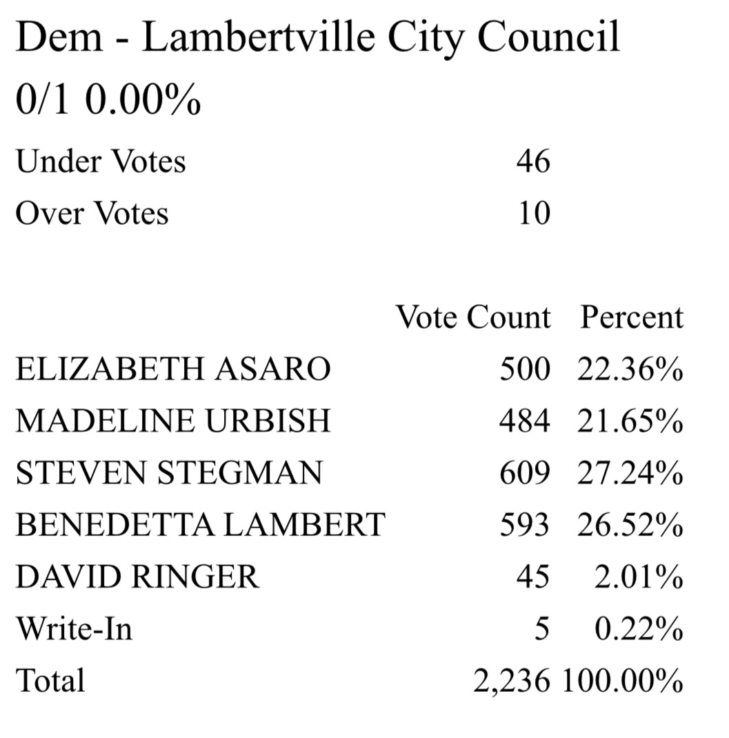 Two of the mayor’s allies lost in Lambertville tonight – two incumbents.