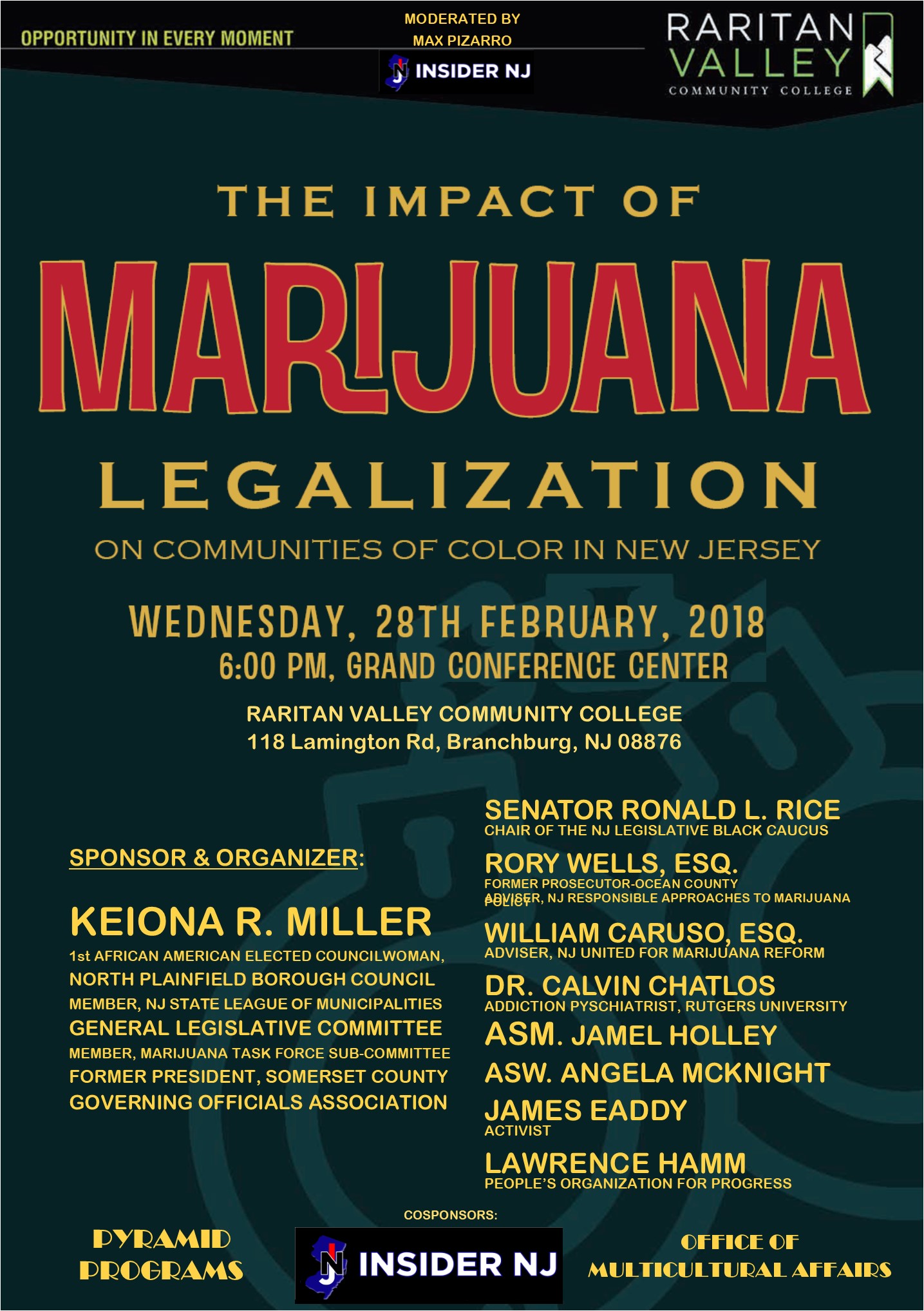 Join Insider NJ on Wednesday, February 28th for a public forum and panel discussion on the impact of marijuana legalization on communities of color in New Jersey at Raritan Valley Community College. RSVP here to attend.