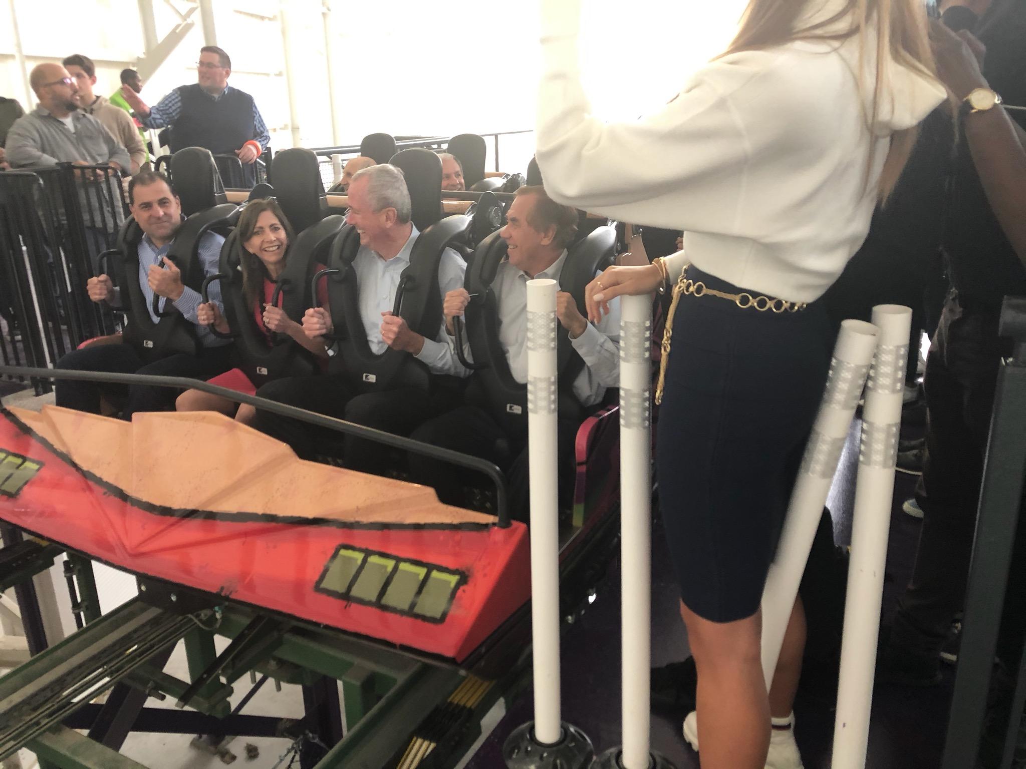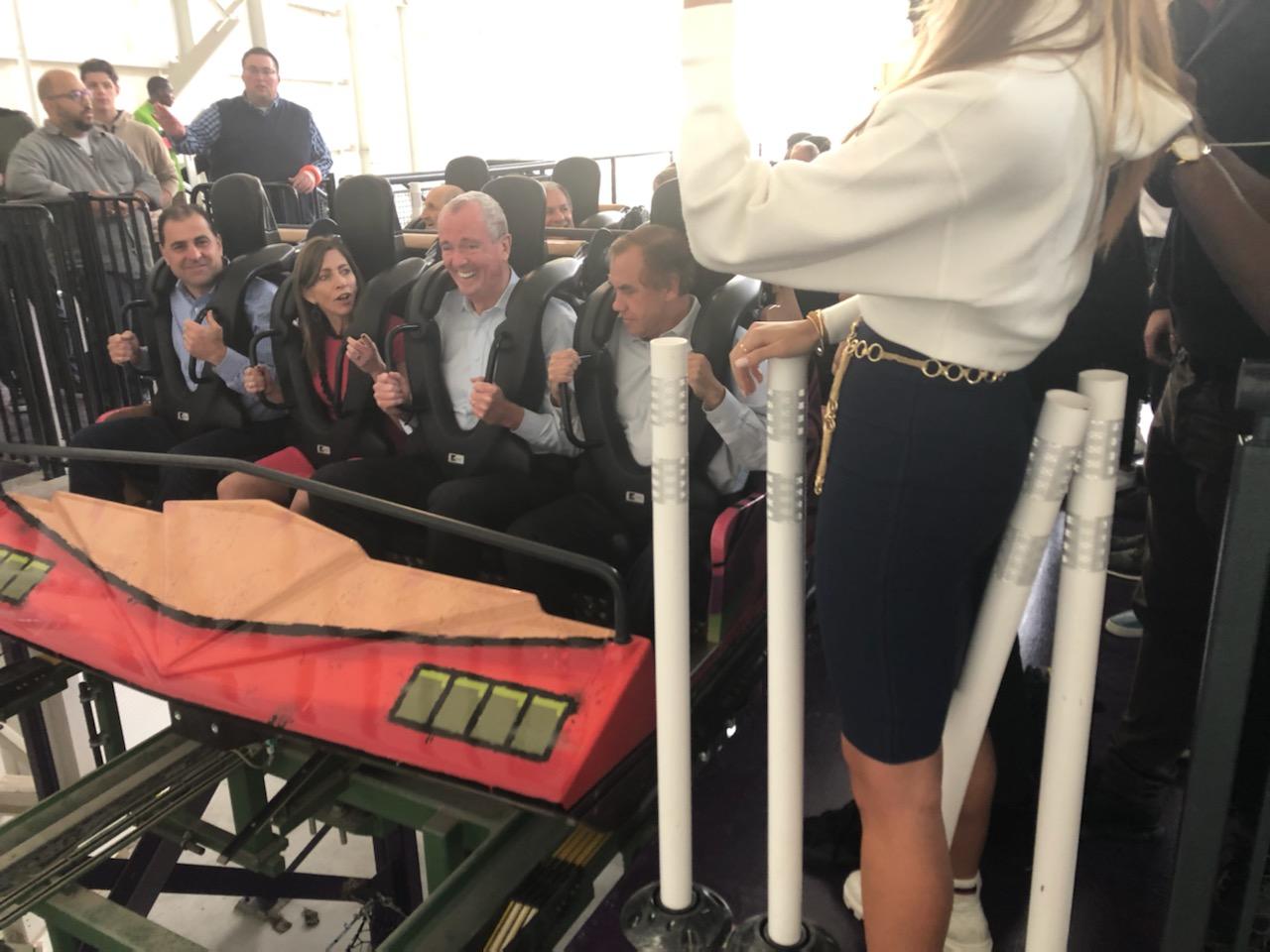 At the opening of the American Dream mega-complex today, Governor Murphy and others took a ride on the roller coaster.