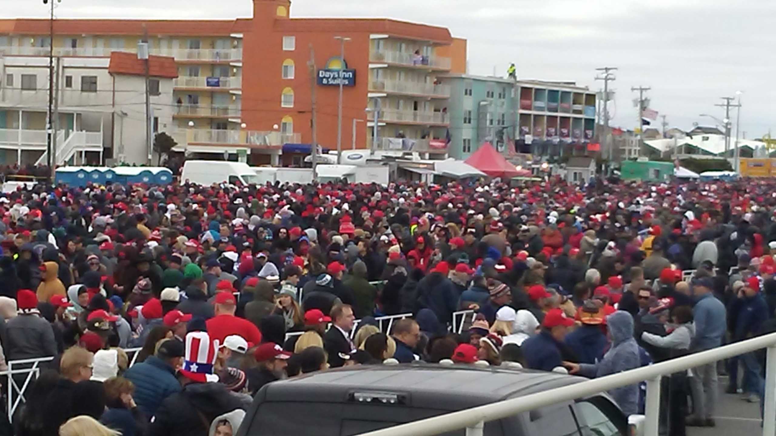 Early this afternoon, backers of President Trump descended on the boardwalk with Wildwood, creating a sea of people next to the ocean, ahead of the rally at 7pm. LD1 GOP Assemblyman Antwan McLellan said 'I'm excited' and that 'the amount of people willing to stand outside - it says a lot'.