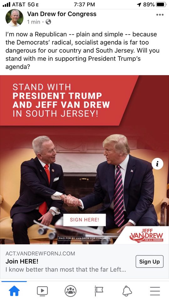 Rep. Van Drew has welcomed President Trump to our state with open arms in spite of his duty to those who elected him. New Jerseyans deserve to be represented by leaders they can be proud of. Leaders who elevate their constituents’ voices -- not ignore them.