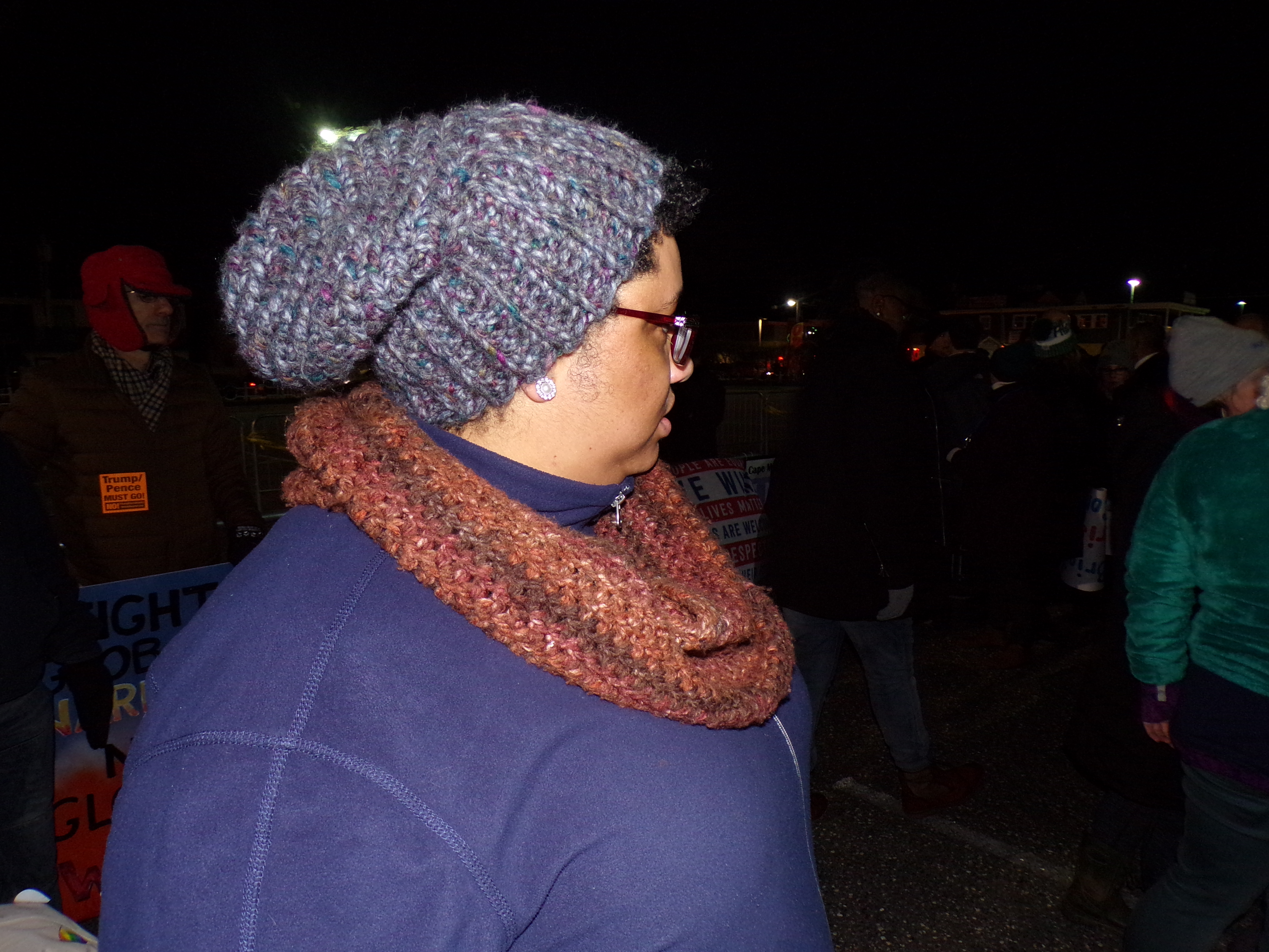 An anti-Trump group of protestors held forth in a parking lot below the Boardwalk.