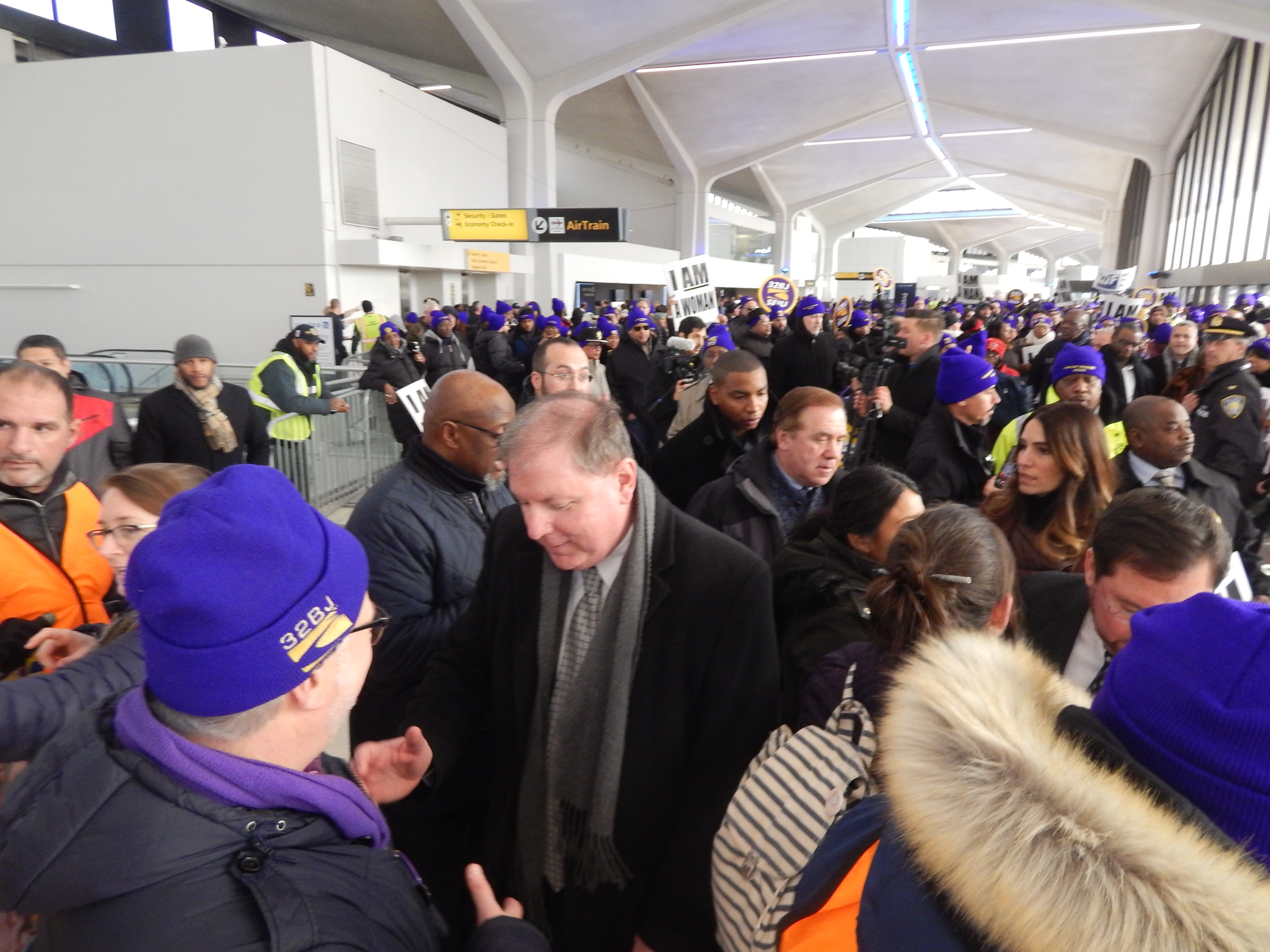 Standing in Terminal C at Newark Liberty after having led the cold weather march from Terminal B, U.S. Senator Cory Booker (D-NJ) dovetailed the issue with MLK Day.