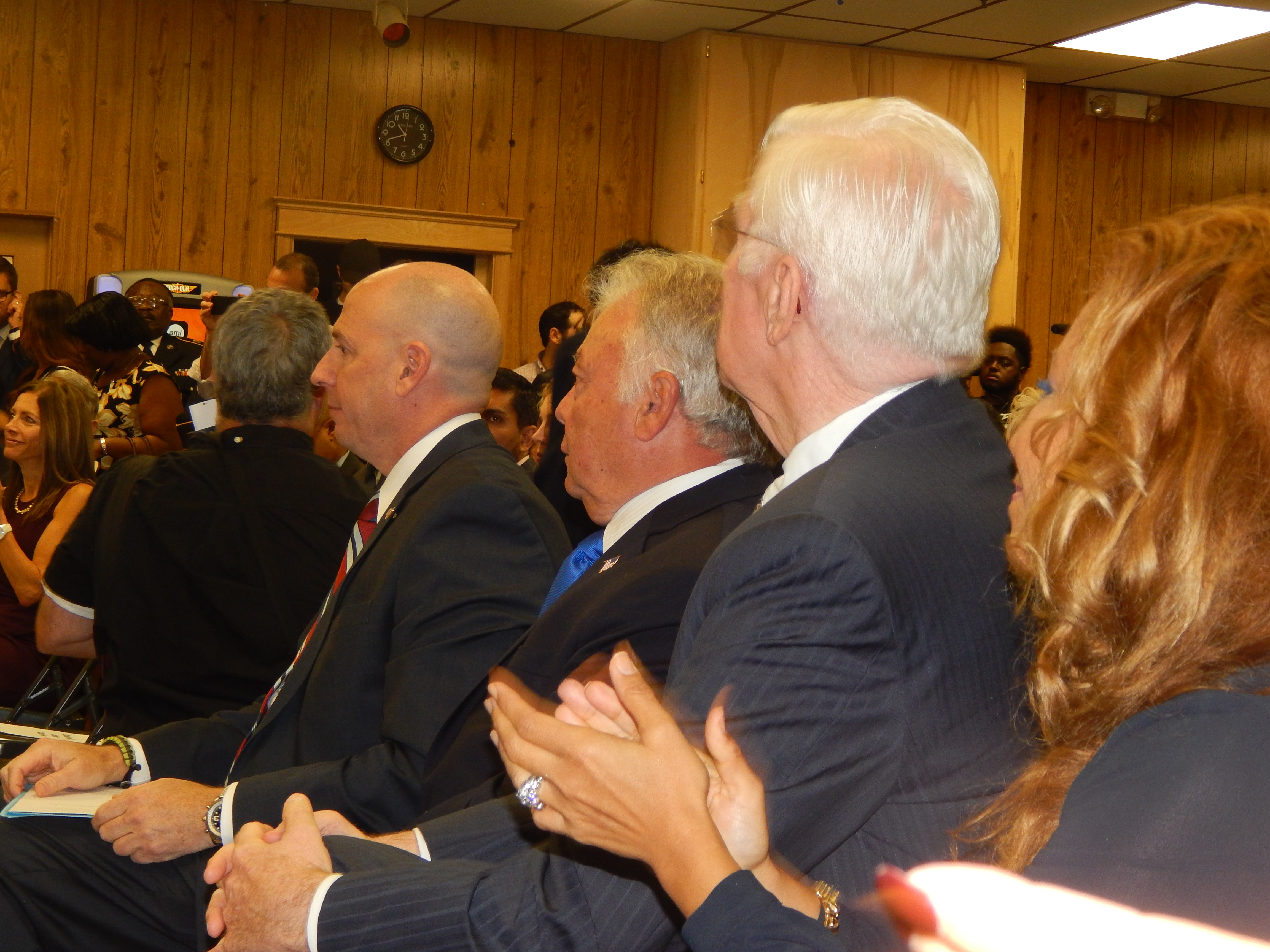 The crowd included Bergen County Democratic Committee Chairman Lou Stellato, Speaker Vincent Prieto (D-32), state Senator Jim Beach (D-6), Assemblyman Tom Giblin (D-34), Assemblyman Gary Schaer (D-36), Assemblywoman Marlene Caride (D-36), Assemblyman Benjie Wimberly (D-35), Passaic Freeholders Sandi Lazzara, Bruce James, Pat Lepore, T.J. Best and Assad Akhter, Woodland Park Mayor Keith Kazmark, and former Bergen County Sheriff Leo McGuire.