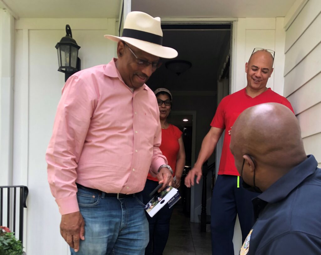 With him is Anthony Cureton, who is the Bergen County sheriff, a key supporter, and a neighborhood resident to boot. So, this is destined to be a friendly audience.