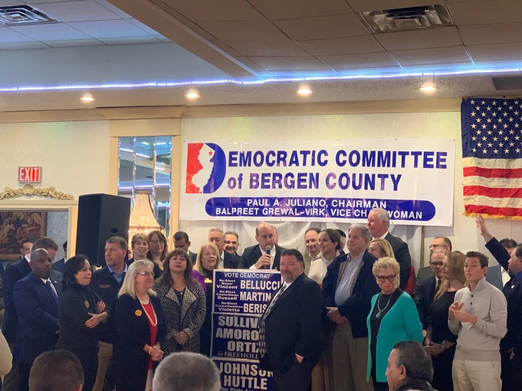 Flanked by party leaders and elected officials, Bergen County Democratic Chairman Paul Juliano announced his endorsement of John Currie for Democratic State Chairman this morning in front of 800 people who made the pilgrimage to Juliano’s annual GOTV breakfast in Fairview.