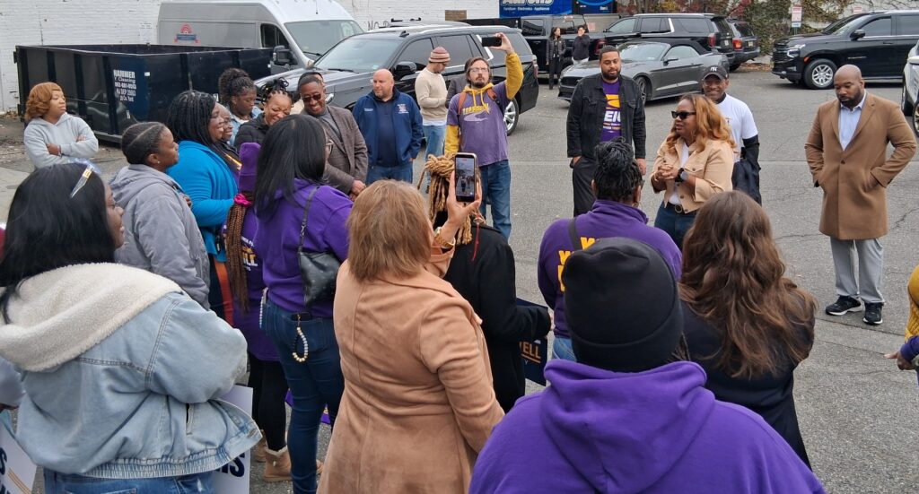 "You've got to call your ex's and remind them to vote," Verrett told the crowd of purple-shirted door knockers and GOTV diehards at the downtown headquarters of Sherrill-Central.