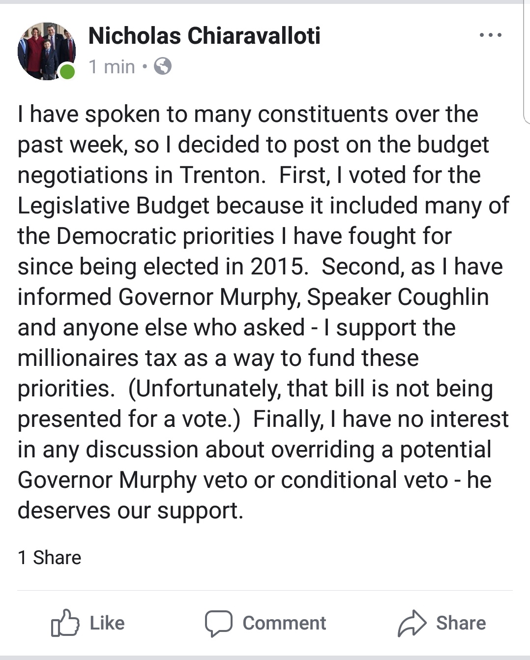 LD31 Flashpoint: Chiaravalloti on FB Says He Backs a Millionaire's Tax By Insider NJ | June 29, 2018, 2:02 pm | in Caucus Room Article Tags: LD31 Nick Chiaravalloti Phil Murphy Click here for the full Insider Index