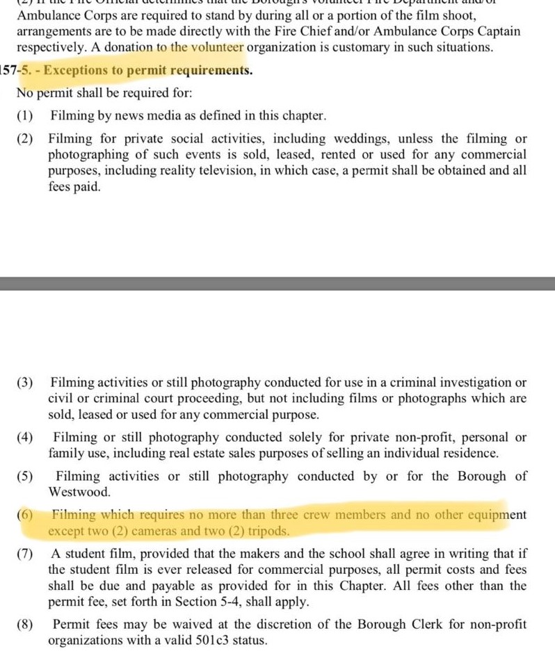 Following a release of photos taken of the production team and confirmation that no film permit was obtained from the Borough of Westwood in violation of its new film ordinance adopted less than two weeks ago.