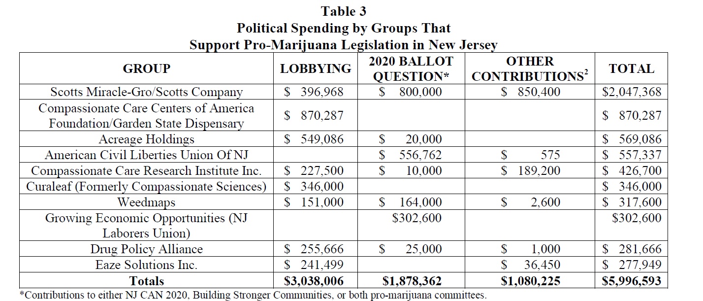 While the virus crisis was a major priority of state officials and lobbyists last year, Brindle said the push to legalize marijuana in New Jersey also lead to heavy spending.