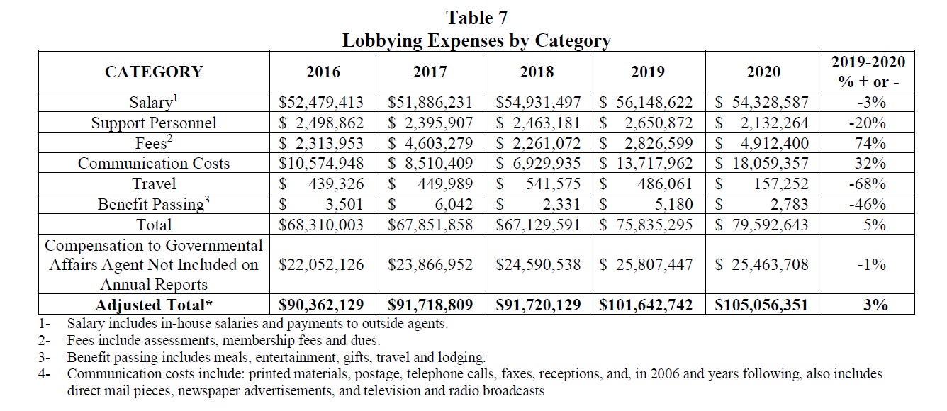 Lobbying expenditures hit a record $105 million in 2020 as lawmakers enacted scores of bills to