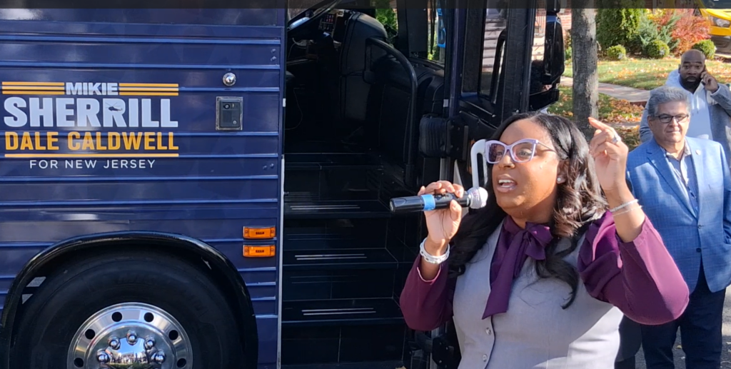 "This election is life or death," McIver told InsiderNJ moments after a with Sherrill on board rumbled onto Hansbury Avenue. "You want to know what's on the ballot? You're on the ballot. So get out there and vote for Mikie Sherrill and Dale Caldwell.