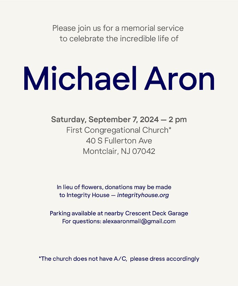 Memorial Celebration Service for Michael Aron By Insider NJ | August 21, 2024, 6:45 pm | in Edward Edwards Article Tags: Michael Aron Click here for the full Insider Index