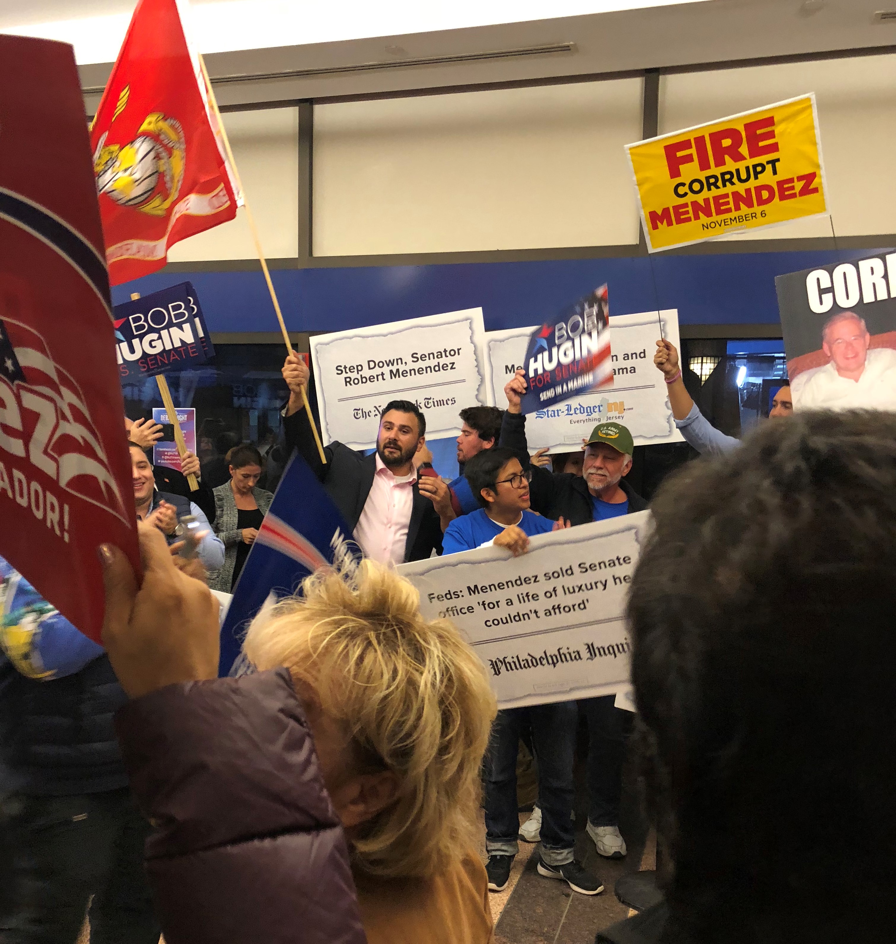 NEWARK - It’s hard to see what it really means, but dozens of supporters of both Bob Menendez and Bob Hugin are yelling at each other in the hallway outside the NJTV studio.