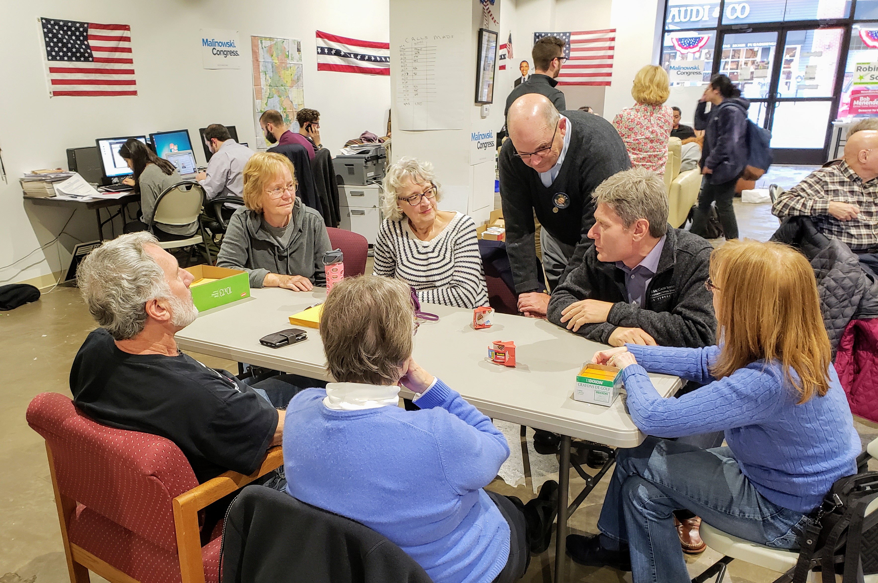 Fifty to 60 Malinowski backers prepared canvassing packets, part of what insiders say is Malinowski's a highly disciplined team of volunteers mobilizing to help their candidate pick off incumbent U.S. Rep. Leonard Lance (R-7).