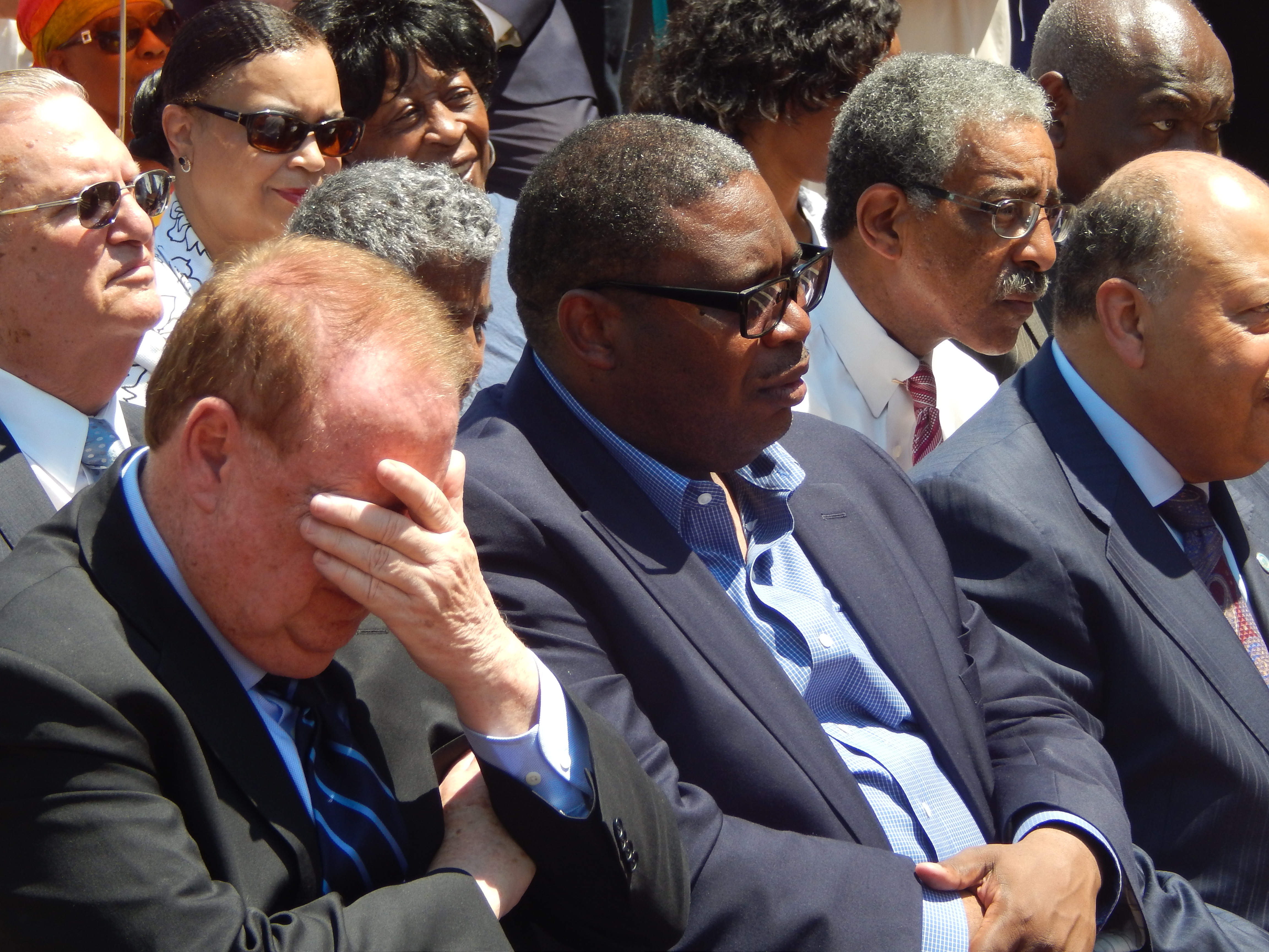 Former Governor Dick Codey - an early and avid Baraka backer - couldn't resist rubbing it in, rising from where he sat at one end of a front row alpha male musical chairs set up that included Murphy, Democratic State Committee Chairman John Currie, East Orange Councilman Ted Green, Essex County Executive Joe DiVincenzo and Irvington Mayor Tony Vauss.