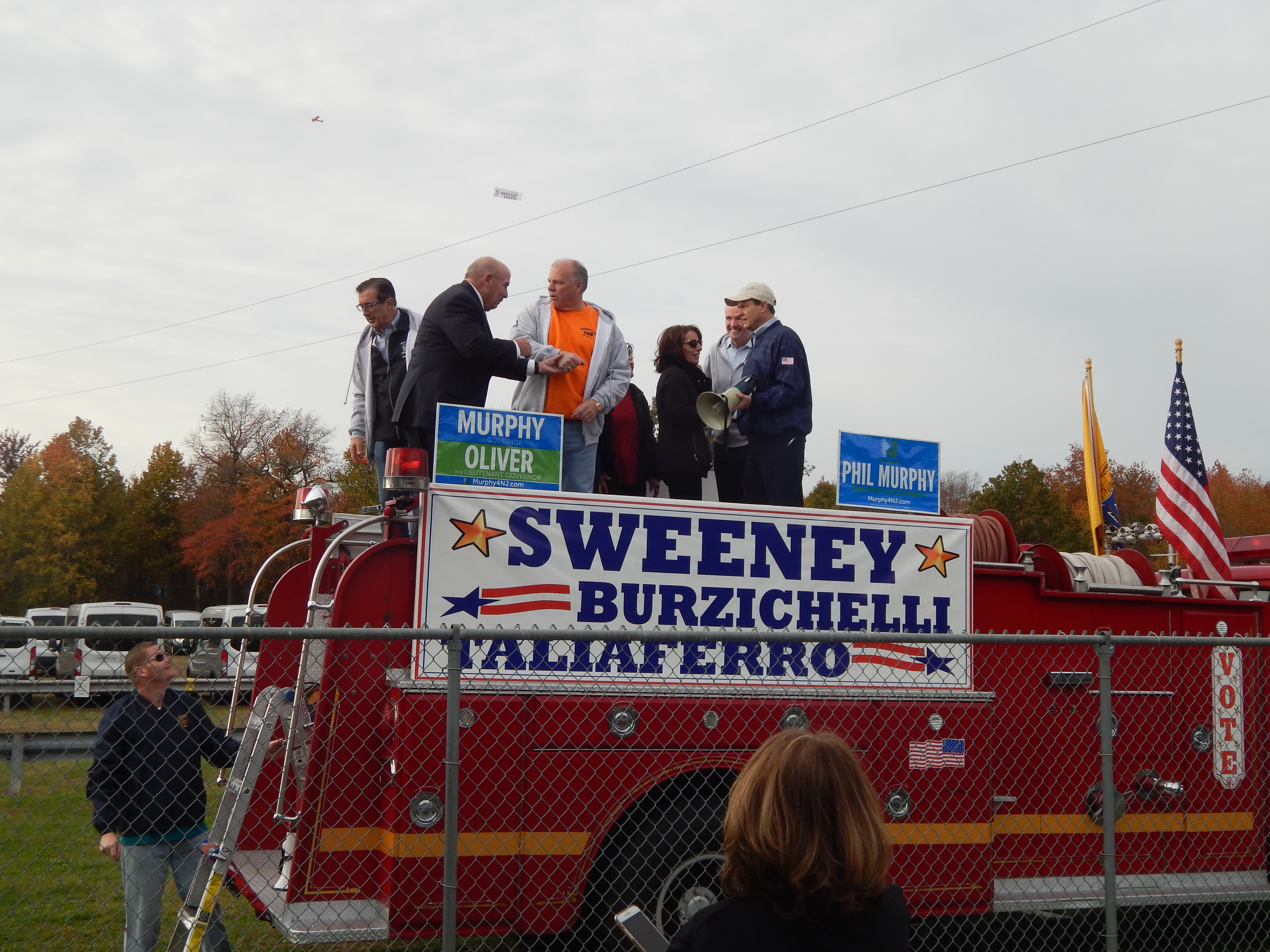 "Be careful, Murph," an ironworker cautioned as the lanky gubernatorial nominee yanked his frame up a ladder on the back of the vintage Assemblyman John Burzichelli (D-3)-owned firetruck.