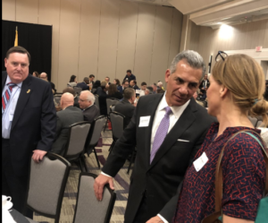Earlier in his speech to a luncheon crowd of about 250 at the Marriott hotel, Murphy took credit for increasing state aid to education and hinted that's going to happen again in this year's budget. He observed that, "a dollar in state aid is a dollar school districts do not have to ask in taxes."