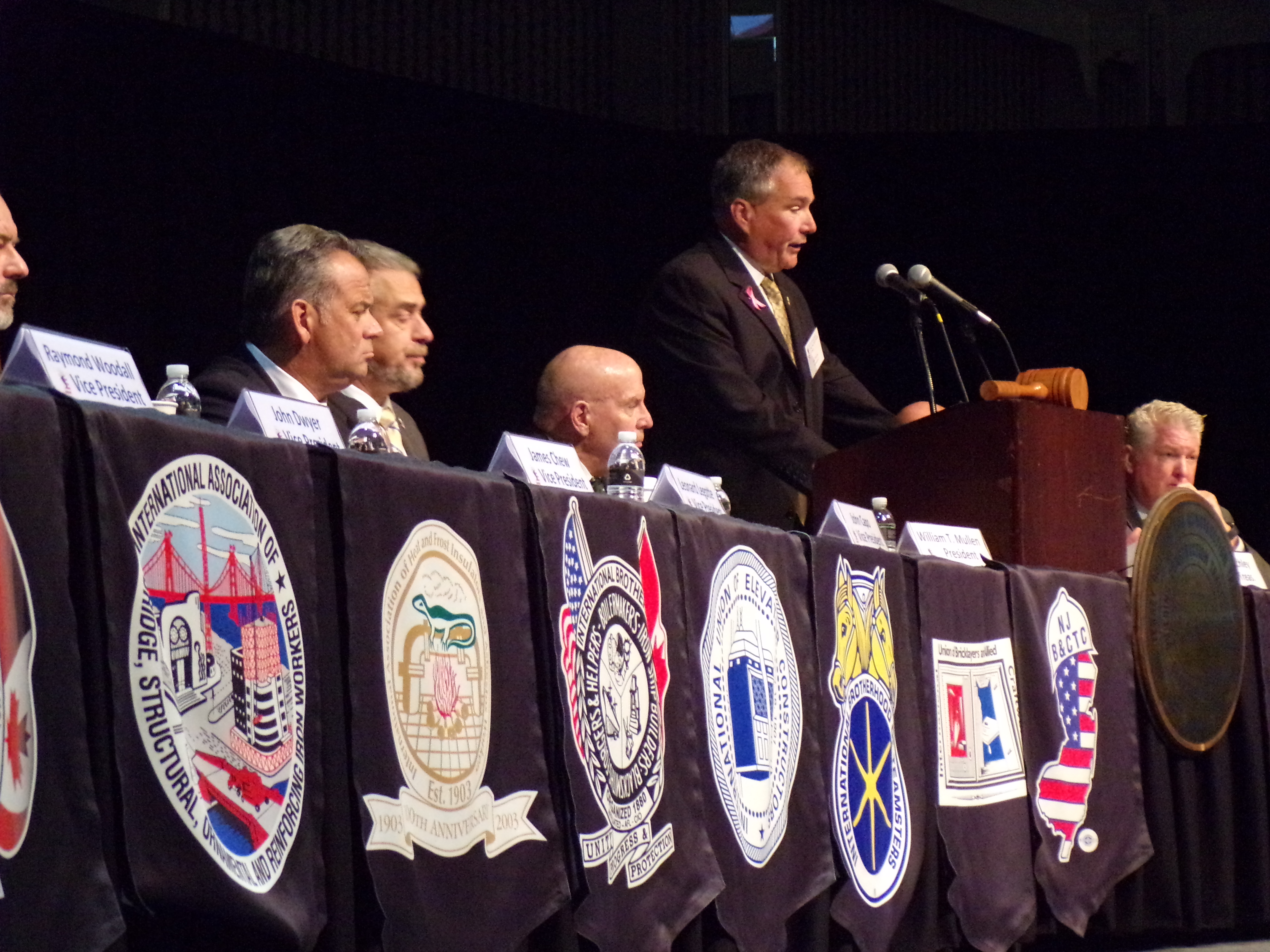 Mullen put on an exclamation point on the governor's presence with a build-up speech of praise on the heels of the entire organization formally issuing its endorsement. "He's there for us," said the president of the New Jersey Building Trades. "He understands what we do, as compared with other labor unions. He understands we need more enforcement of the labor laws here in New Jersey."