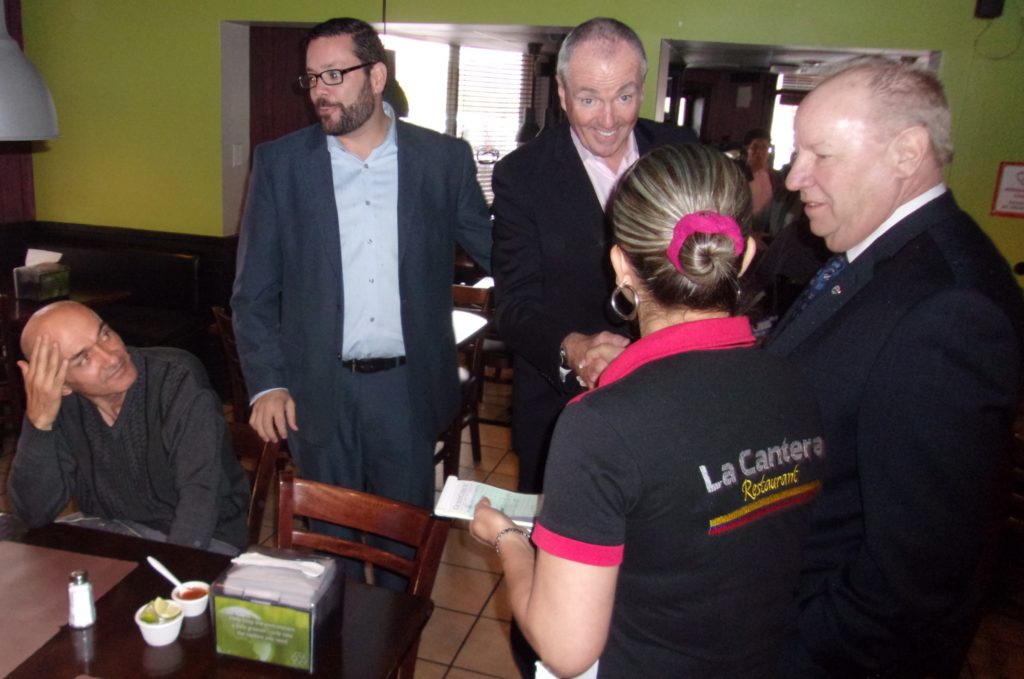Murphy radiates goodwill and good energy in all weather, and he seemed his usual upbeat self as he bodega-hopped with Mayor Chris Bollwage, Councilwoman Patricia Perkins Auguste and Councilman Carlos Cedeno a day before Election Day.