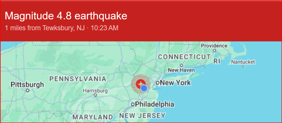 New Jersey just experienced a significant earthquake out of the Tewksbury/Lebanon area.