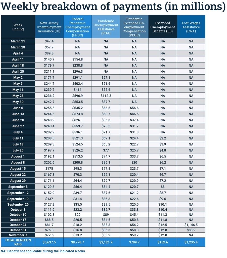 The Department has distributed $18.7 billion in payments to unemployed and under employed New Jersey workers, including $241 million last week.