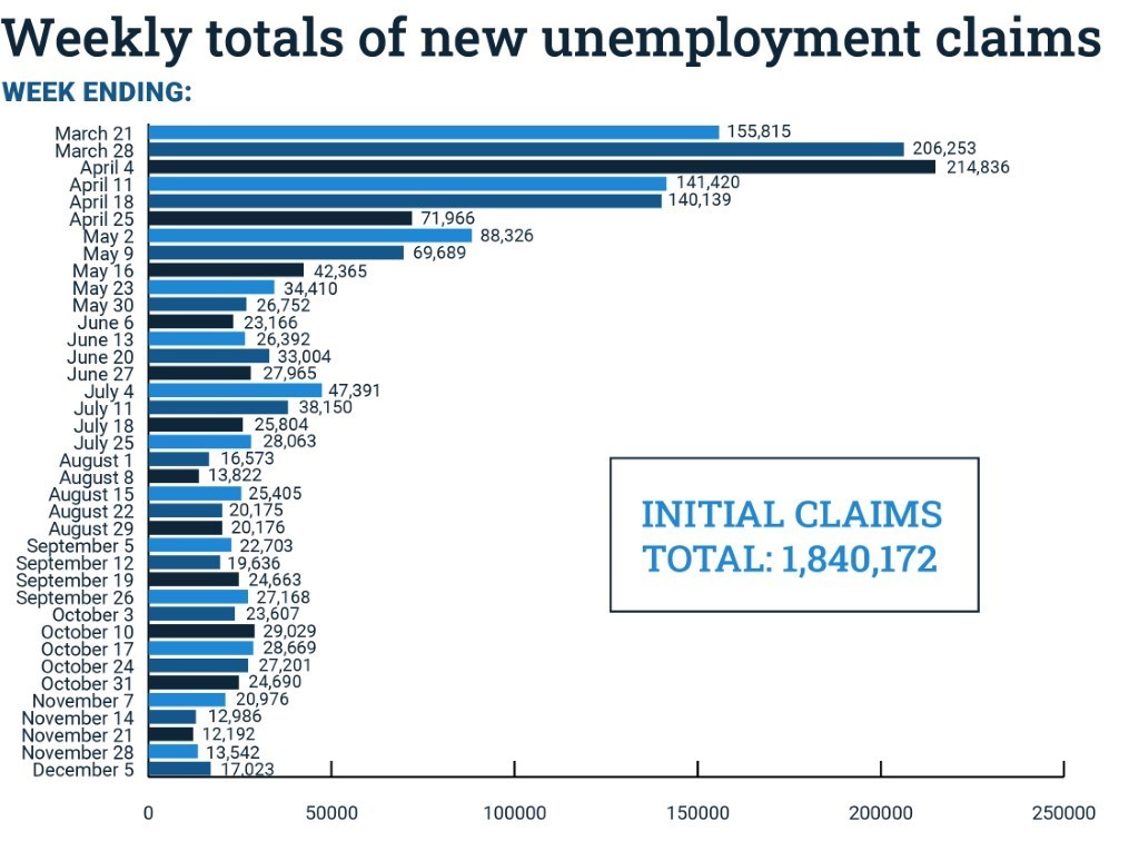 The Department distributed $230 million in benefits during the week ending Dec. 5, and has sent a total of $19.75 billion to workers impacted by the pandemic.