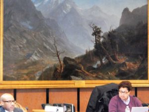 The meeting lasted very late, with Council President Williams allowing a long line of irritated cabbies to form at the microphone during the public comment portion of the meeting. Mapp was gone by that point, having sat with stately attentiveness and friendly, forceful encouragement in front of one of the Bierstadt masterpieces, as two young Plainfield students read their winning essays on the enduring virtues of Martin Luther King, Jr.