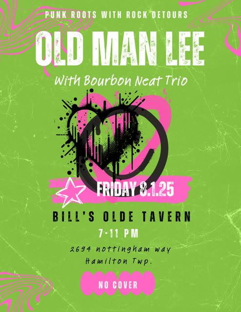 Old Man Lee plays at Bille's Olde Tavern in Hamilton, 2694 Nottingham Way, on Friday, August 1, from 7-11. There's no cover charge, and the band will be accompanied by the Bourbon Neat Trio, a project featuring other members of the band.