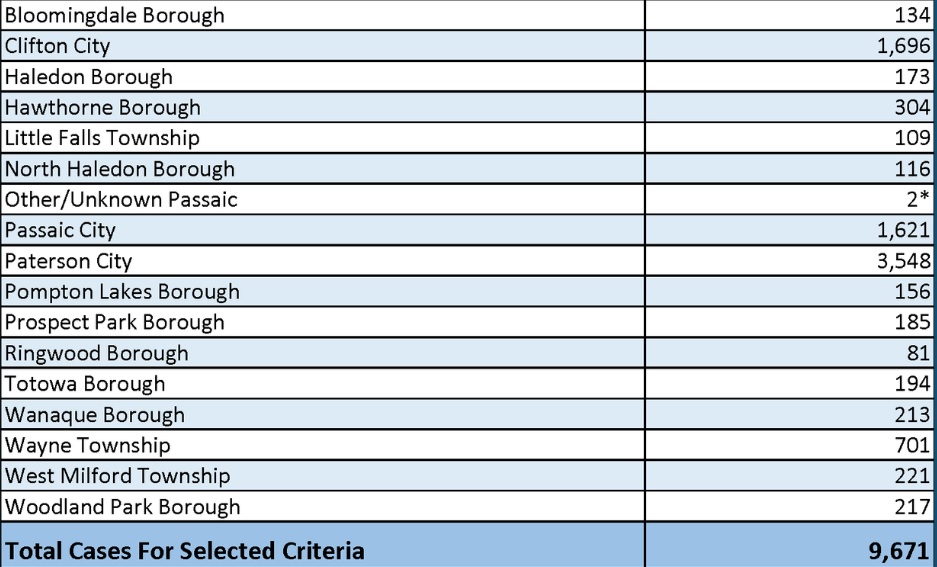 Paterson has 3,548 cases, while Clifton has 1,696 cases and Passaic has 1,621.