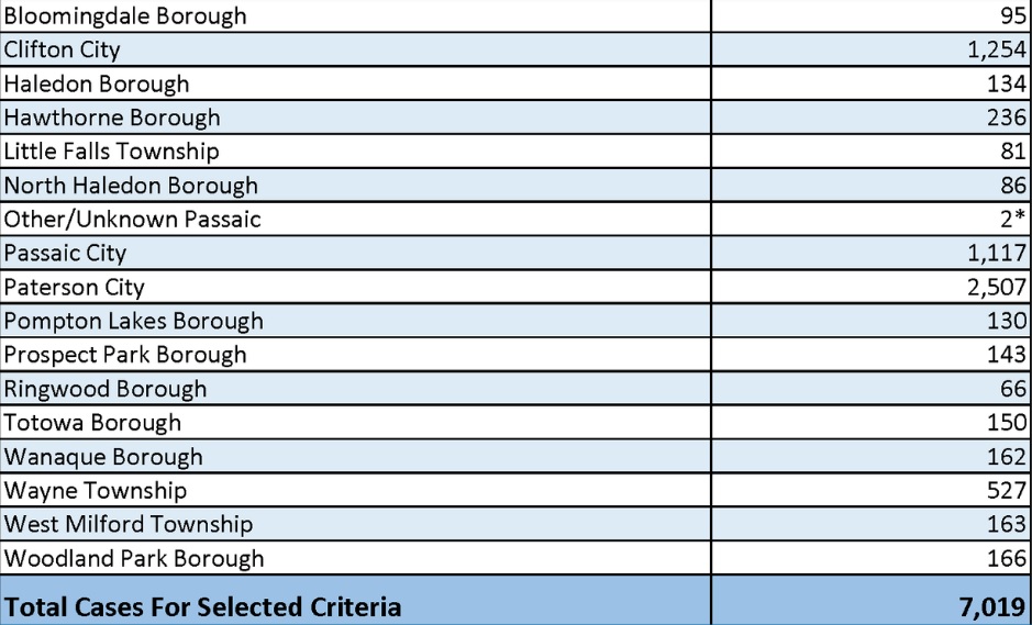 Paterson has surpassed 2,500 cases alone, while Clifton has 1,254 cases and Passaic has 1,117.
