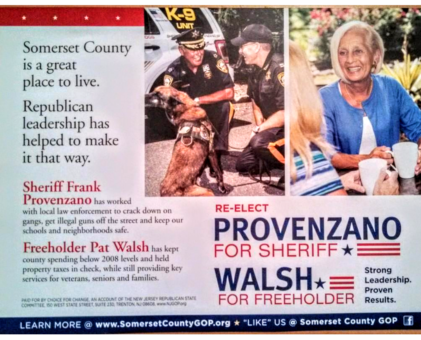 "I can't thank Sheriff Provenzano enough for the support he gave me throughout my career," Pino told InsiderNJ. "He promoted me '4' times and it was an honor he used me and my police K9 on his campaign mailer (attached) to get himself re-elected. I loved being the A/Chief of the Sheriff's Office when I retired as noted in my recent endorsement by the Sheriff's Office Police Officers Union."