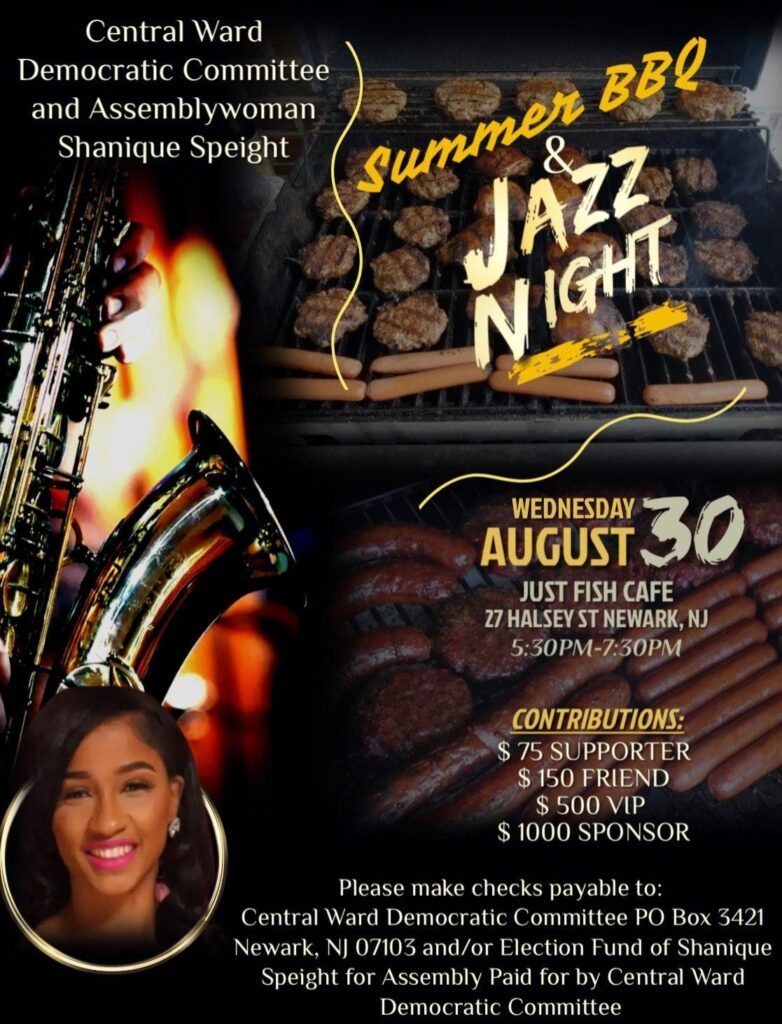 New Jersey Assemblywoman Shanique Speight and Central Ward Democratic Committee invites you to their annual Summer BBQ & Jazz Night on Wednesday August 30th, 2023.