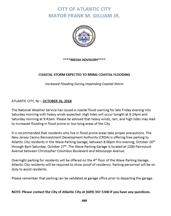 Atlantic City Advisory: Coastal Flooding