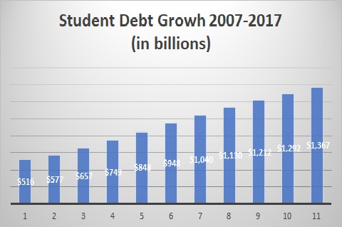 According to data from the U.S. Department of Education, student loan debt more than doubled from