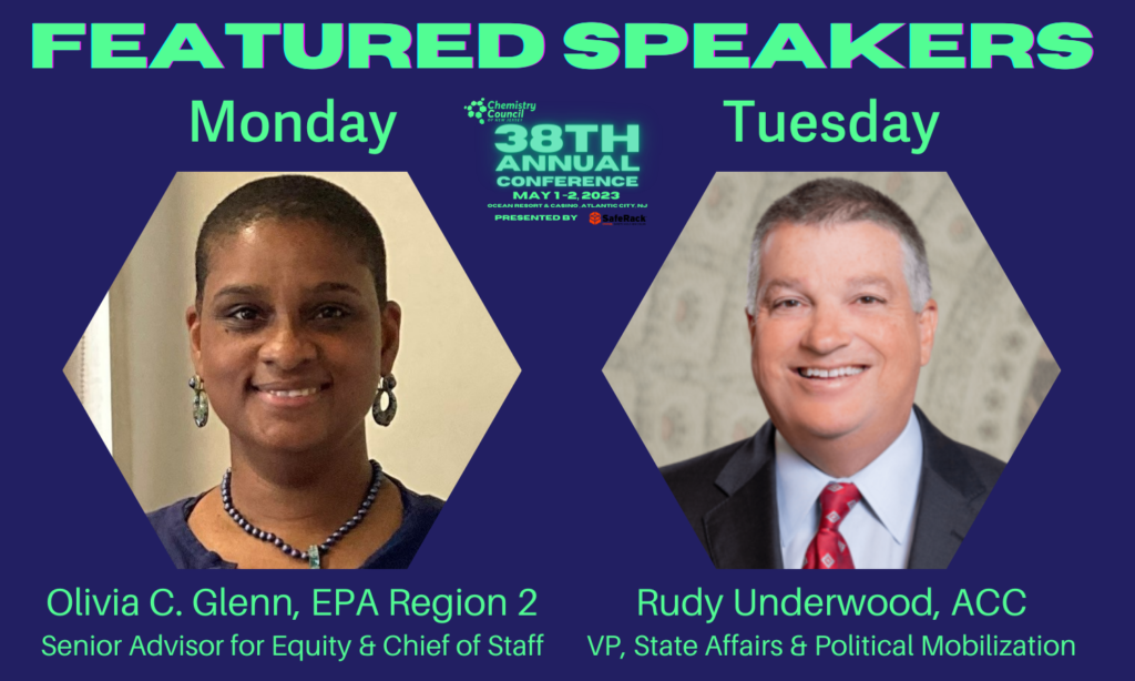 The 38th Annual Conference will feature keynote presentations by Russ Niksic, North American Managing Director, and Senior Vice President of CRODA; Michael Renna, South Jersey Industry’s President & CEO; and SOCMA’s President and CEO, Jennifer Abril. This year the conference will showcase two featured speakers. Olivia Glenn, EPA Region 2 Chief of Staff and Senior Advisor for Equity will speak on Monday afternoon, and Rudy Underwood, Vice President, State Affairs and Political Mobilization at the American Chemistry Council will speak on Tuesday.