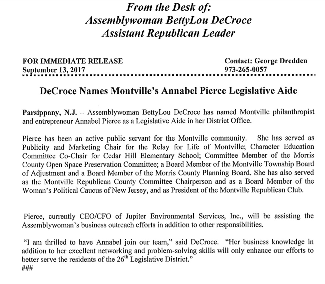 DeCroce Names Montville's Annabel Pierce Legislative Aide