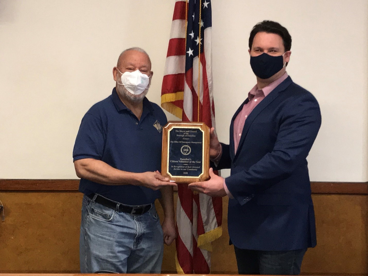 The Dunellen Office of Emergency Management is presented the “Dunellen’s Volunteer Citizen of the Year, 2020.” (L to R): OEM Coordinator Homer Mosley Jr and Mayor Jason F. Cilento.