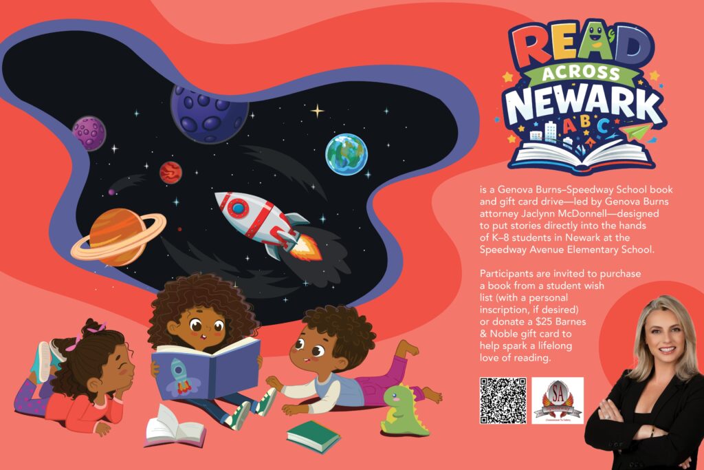The initiative adds to an already milestone year for McDonnell. In addition to her promotion to Counsel, she was recently recognized as a Leader in Law by NJBIZ and began filming her bankruptcy-focused podcast, This IS Fixable, all while spearheading this new charitable effort. “Jaclynn exemplifies the kind of leadership we value — not only professional excellence, but a genuine commitment to lifting up the communities around us. Her Read Across Newark initiative reflects the heart of our firm’s culture,” said Jennifer Borek, Managing Partner of Genova Burns.