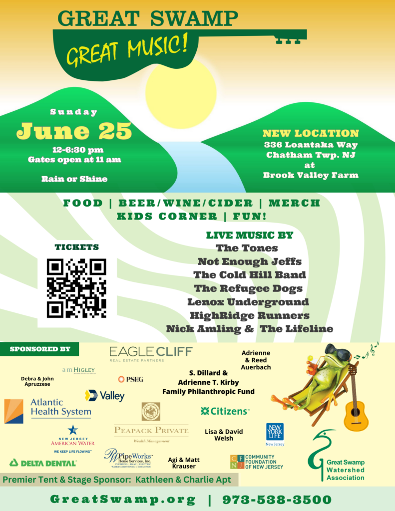 Great Swamp Watershed Association is a Morristown-based 501(c)(3) non-profit organization dedicated to protecting and improving the land and water from the Great Swamp headwaters in Mendham to Newark Bay. The Great Swamp Great Music festival is the organization’s second largest annual fundraiser.