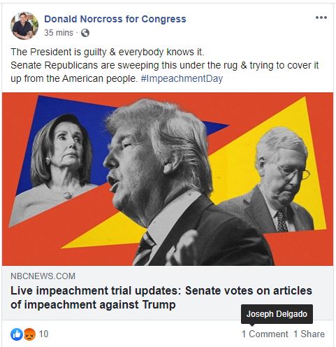 Gustafson says Norcross should “stop whining about this impeachment nonsense.”
