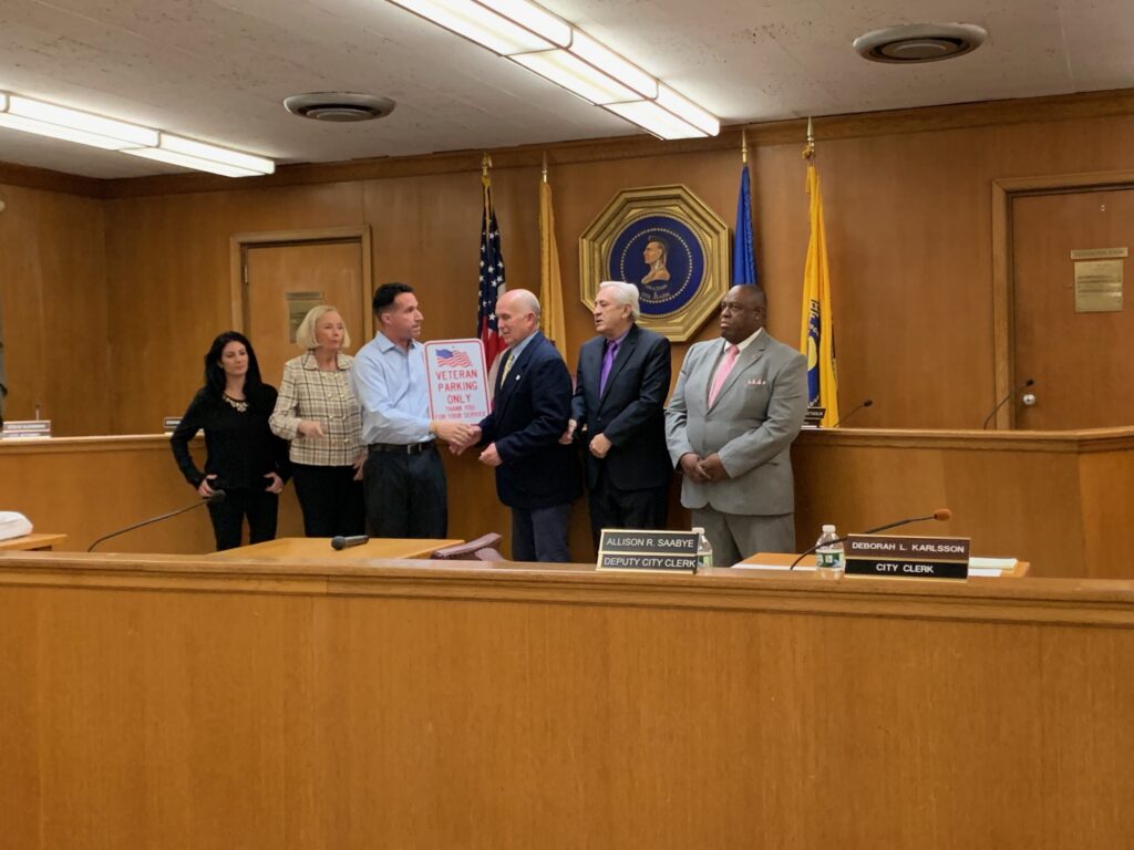 [Hackensack, New Jersey – January 14, 2020] During a ceremony at the start of the semi-monthly city council meeting, Peter Lupo, Vice President of Public Affairs and Legislative Outreach for the New Jersey State Veterans Chamber of Commerce, presented the Veteran Friendly Municipality Certification to Hackensack mayor, John P. Labrosse, Jr., deputy mayors Kathleen Canestrino and David Sims,, and council members Leonardo Battaglia and Stephanie Von Rudenborg