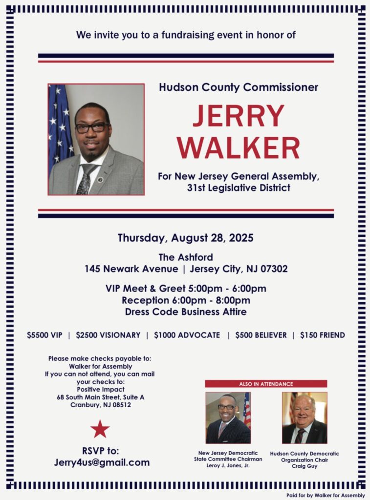 Join Hudson County Commissioner Jerry Walker for a Fundraiser in Support of His Campaign for NJ State Assembly – Legislative District 31