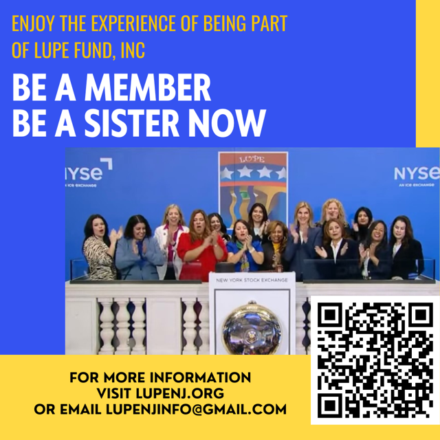 “It’s an honor for LUPE sisters to be recognized by NYSE. Our board features diverse Latina leaders with combined decades of experience in law, education, human services, business, and public policy. By ringing The Opening Bell® today, our hermanas are raising awareness of our organization and our work to advocate for Latinas throughout New Jersey,” said Peggy Anastos, LUPE Fund advisor, president emeritus and chair of the New Jersey Commission on Puerto Rico.