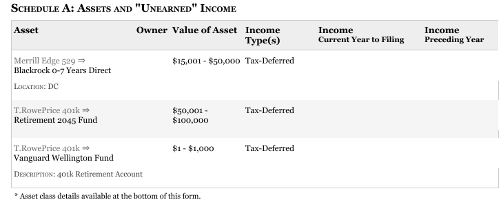Andy Kim filed his financial disclosure statement on October 17, 2017, covering the year 2017. In it, he reports income from the ”preceding year” (2016) as a partial year’s salary of $23,450.00 from the Department of State. How he occupied himself during the remainder of 2016 is anyone’s guess. On this and subsequent disclosures, Andy Kim does not indicate any work income for 2017 or 2018, making him a full-time candidate.