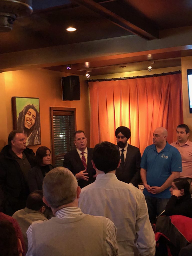 Mayor Ravi S. Bhalla hosted an evening with the voting members of the Hoboken Democratic Committee to garner support for Senator Brian Stack in his pursuit to be the next chair of the Hudson County Democratic Organization. Senator Stack addressed the Committee and shared his thoughts on the future of what the County Organization will look like under his leadership.