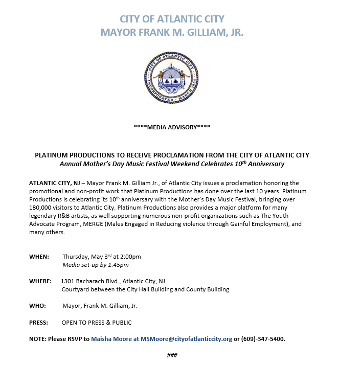 Mayor Gilliam to Issue Proclamation to Platinum Productions