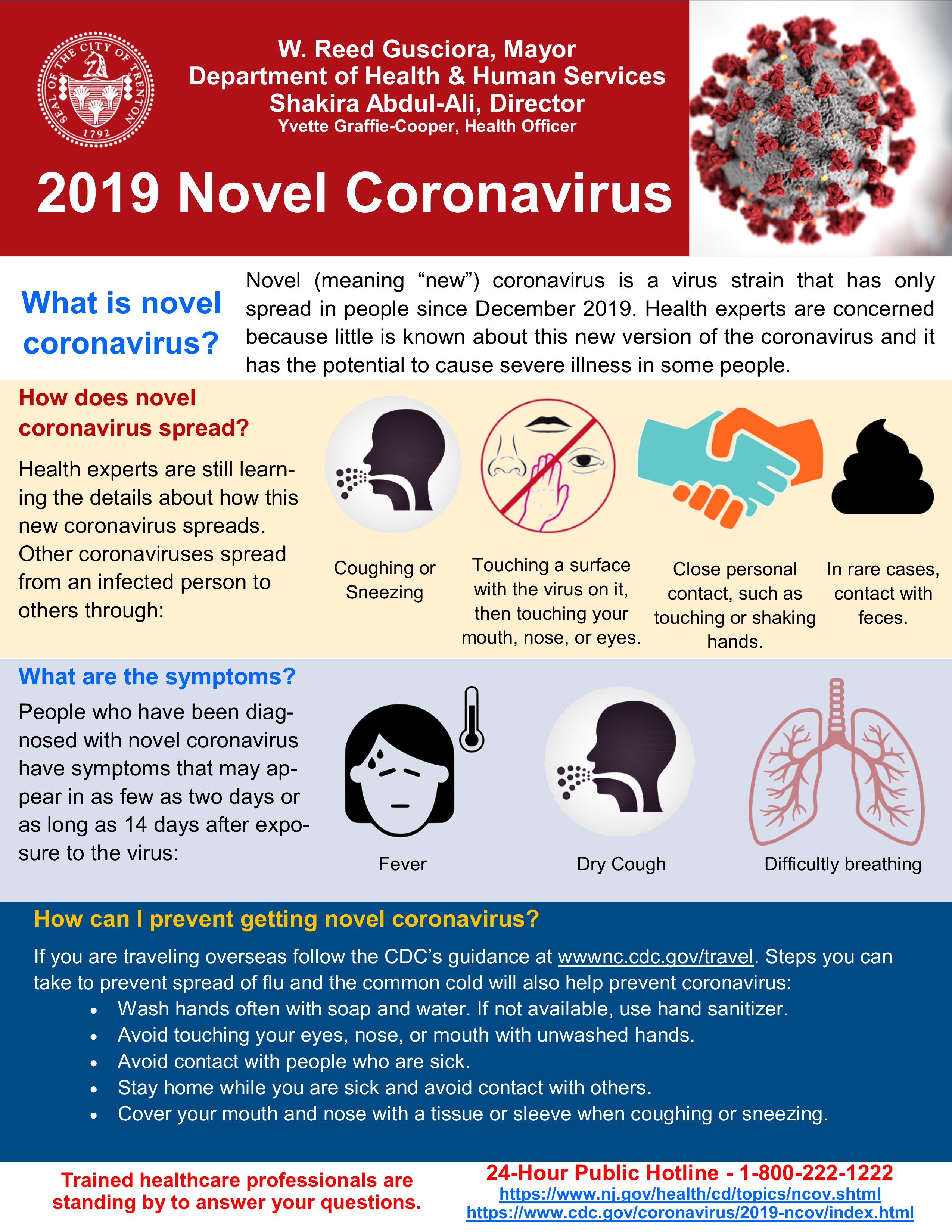 As long as the virus continues to spread to this area, we will continue to offer public assistance and keep the public health and wellbeing of our citizens a priority. Those concerned that they could be infected should be calling the NJ Department of Health at 1-800-222-1222. We are developing plans for how to handle those who need to stay home. We will to the best of our ability maintain providing essential services to our high-risk population. We are all Trentonians. We will work together to tackle this.