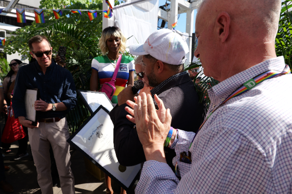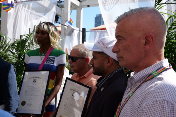 Former New Jersey Governor Jim McGreevey, Congressman Rob Menendez, and State Senator Raj Mukherji joined Hudson Pride and Garden State Equality on the rooftop of Six26 during Jersey City Pride to celebrate Venus’ enduring legacy and the families who continue to keep her memory alive.